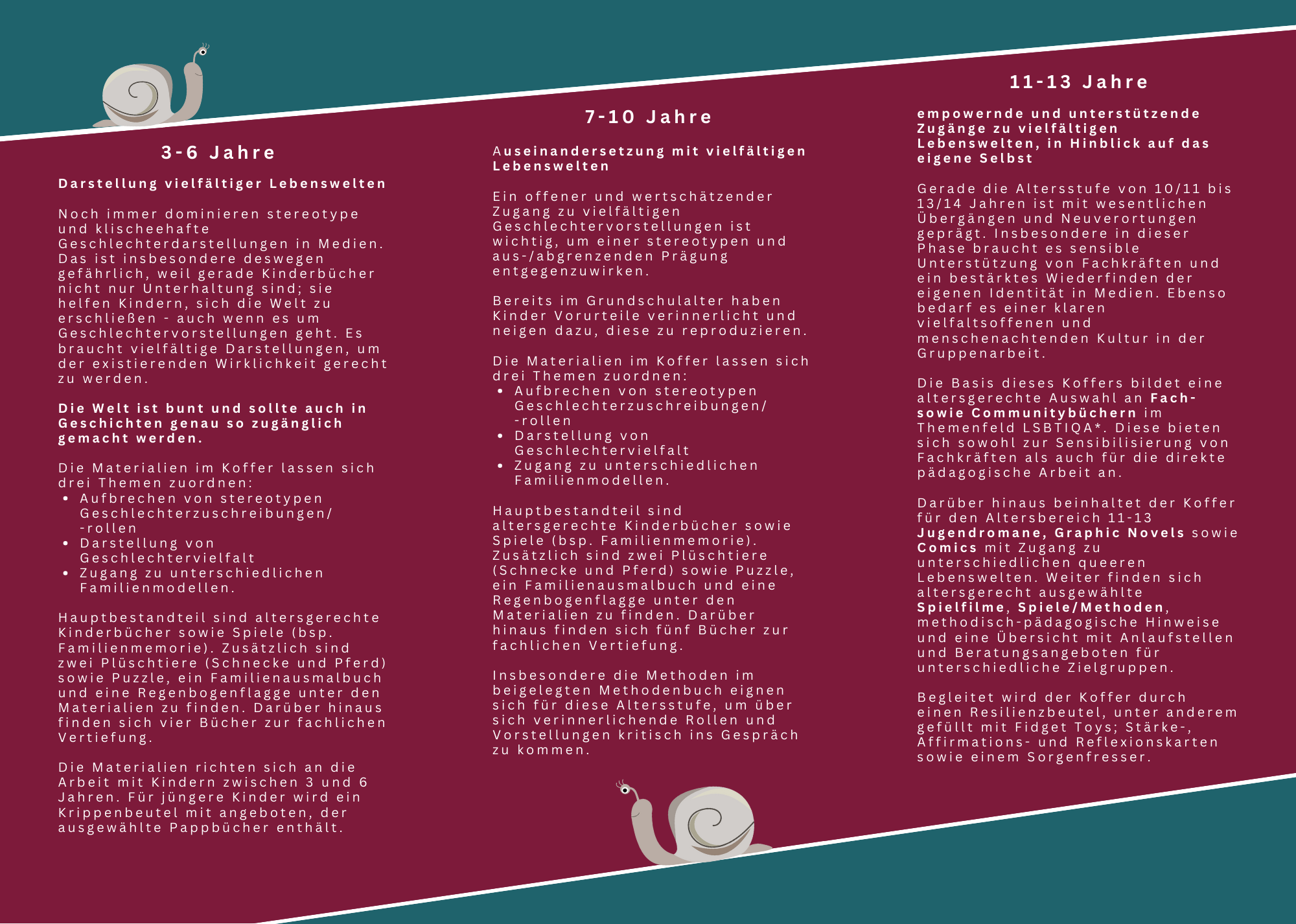 Seit Januar 2018 rollt der Medienkoffer „Geschlechtervielfalt in Einrichtungen der frühkindlichen Bildung, in Grundschulen und Horten“ durch das Land Sachsen-Anhalt. In den Koffern befinden sich Kinder- und Jugendbücher, Handreichungen für Fachkräfte, ein Methodenbuch, eine Regenbogenfahne und Spiele zu den Themen Rollenzuschreibungen, Geschlechtervielfalt und Familiendiversität. Die Koffer werden nur nach einer 90-minütigen Einführung an die Pädagog*innen verliehen, in denen das Material und Methoden für eine geschlechtervielfaltsbewusste Pädagogik vorgestellt sowie Fragen beantwortet werden. Oft finden auch ganztägige Workshops statt, um sich intensiv mit den unterschiedlichen Perspektiven auf Geschlecht beschäftigen und ihre Relevanz für den pädagogischen Alltag erarbeiten zu können. Einrichtungen aus Sachsen-Anhalt können die Koffer für ca. 6 Wochen kostenlos ausleihen.